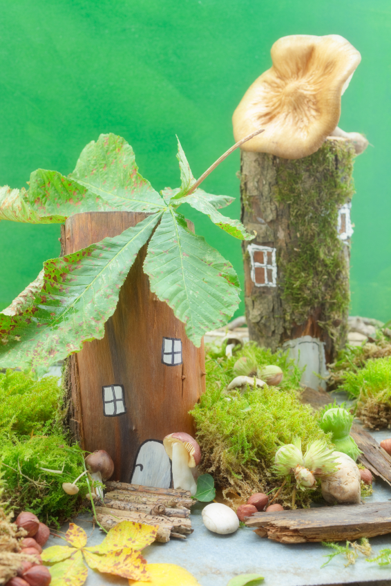 Das Bastelzubehör für diese Idee sammeln Sie einfach beim nächsten Waldspaziergang. Und wenn das Kunstwerk fertig ist, können die Kinder auch noch damit spielen. So kann das Feen-Dorf zum Beispiel als Erweiterung der Playmobil-Ritterburg fungieren.
