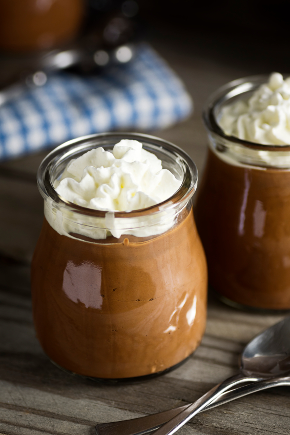 SIE BRAUCHEN: 75 g Puderzucker, 1 EL Backkakao, 3 TL Lebkuchengewürz, 200 ml Wodka, 100 g Nuss-Nougat-Creme, 600 ml Sahne