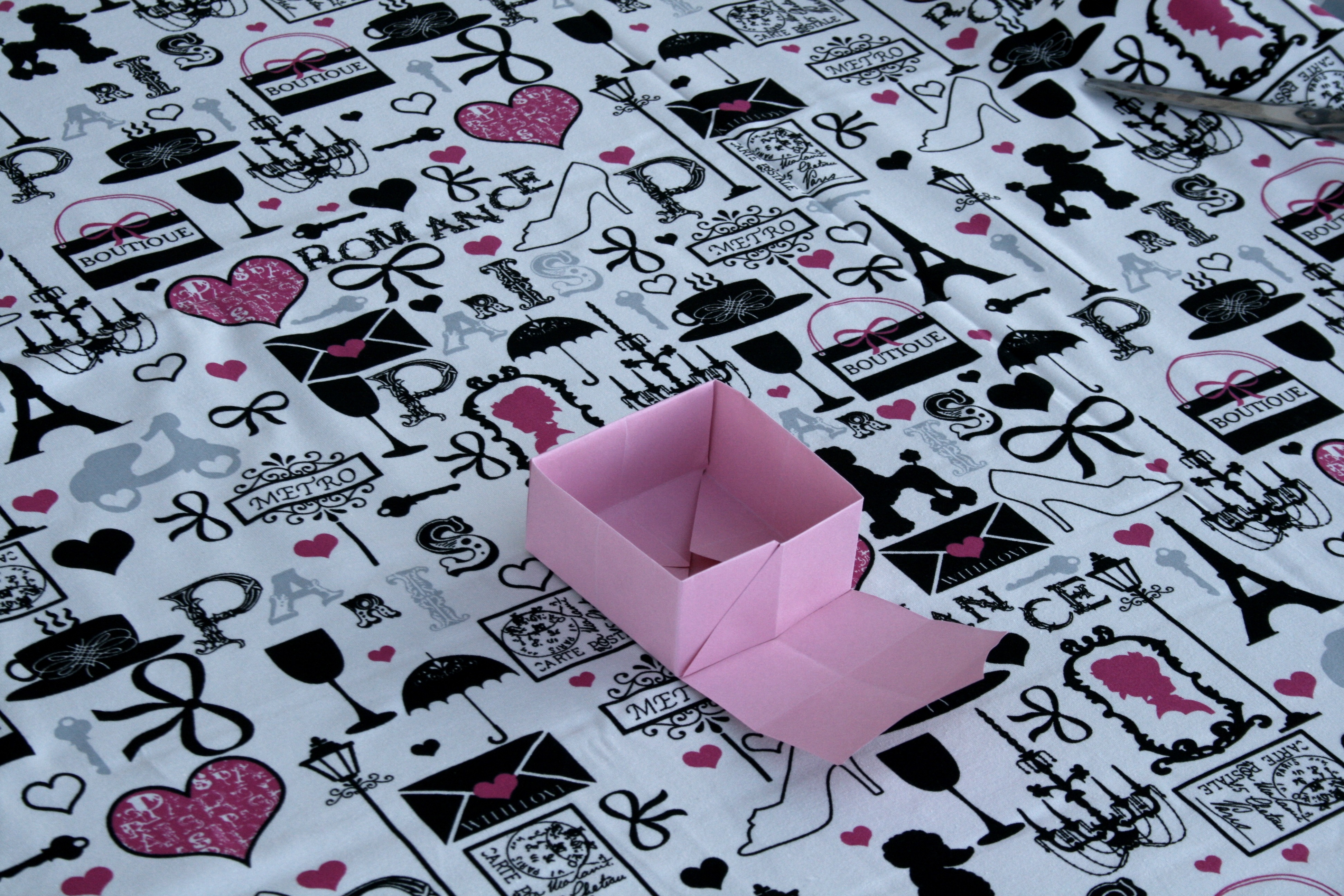 Achten Sie lediglich darauf, dass Ihr Papierquadrat dieses Mal geringfügig größer ist als das der ersten Kiste, 1 bis 2 cm mehr Kantenlänge reichen bereits.