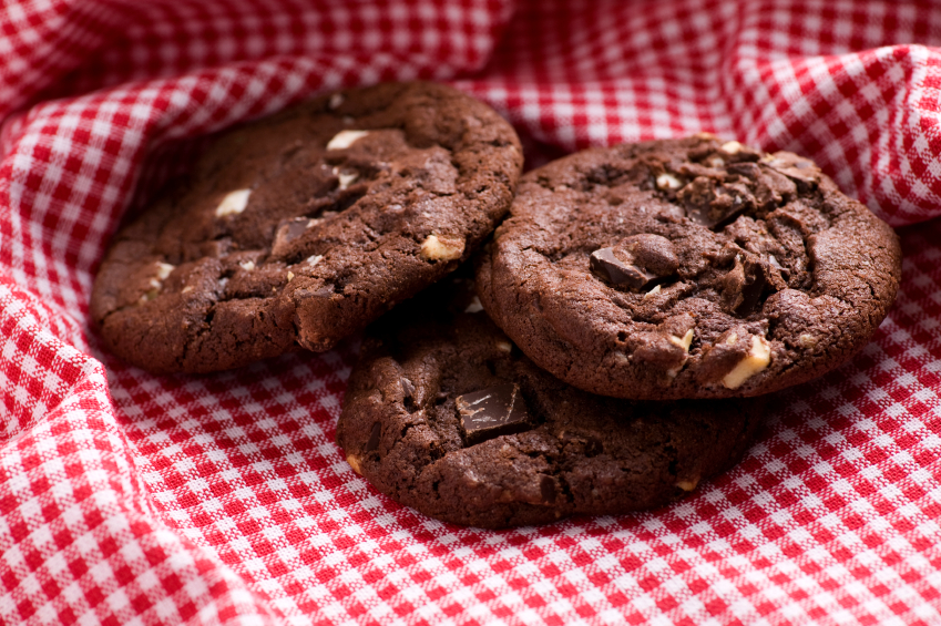 Hacken Sie die Schokolade, sodass kleine Stücke mit ca. 2 bis 3 mm Stärke entstehen. Stellen Sie aus Butter, Zucker, Mehl, Kakao, Natron und Mandeln einen Teig her und geben Sie nach und nach die Schokoladenstückchen hinzu. Heizen Sie den Backofen auf 175°C vor. Formen Sie kleine Kugeln, setzen Sie sie auf ein mit Backpapier ausgelegtes Backblech und drücken Sie sie ein wenig an. Beachten Sie, dass die Kugeln beim Backen zerlaufen und zu flachen Cookies werden. Lassen Sie also auf dem Blech ausreichend Platz zwischen den Kugeln. Backen Sie die Cookies etwa 10 Minuten lang.