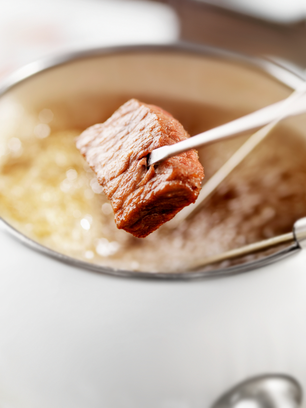 - Fondue: In den Fonduetopf geben Sie je nach Geschmack speziellen Fonduekäse, Öl oder auch schmackhafte Brühe. Dazu brauchen Sie Fleisch und Gemüsestückchen, die im Topf frittiert oder gekocht werden. Mit einem Schokoladenfondue und Obst ist für den Nachtisch auch gleich gesorgt.