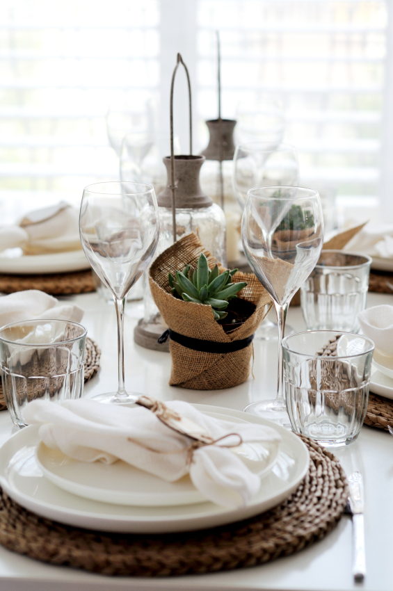 Blumen gehören eigentlich auf jede gedeckte Tafel. Wer gerne länger Freude an der Tischdeko hat, kann einfach Blumentöpfe in hübschen Ziertöpfen auf den Tisch stellen – diese eignen sich zum Beispiel auch toll als Gastgeschenk.