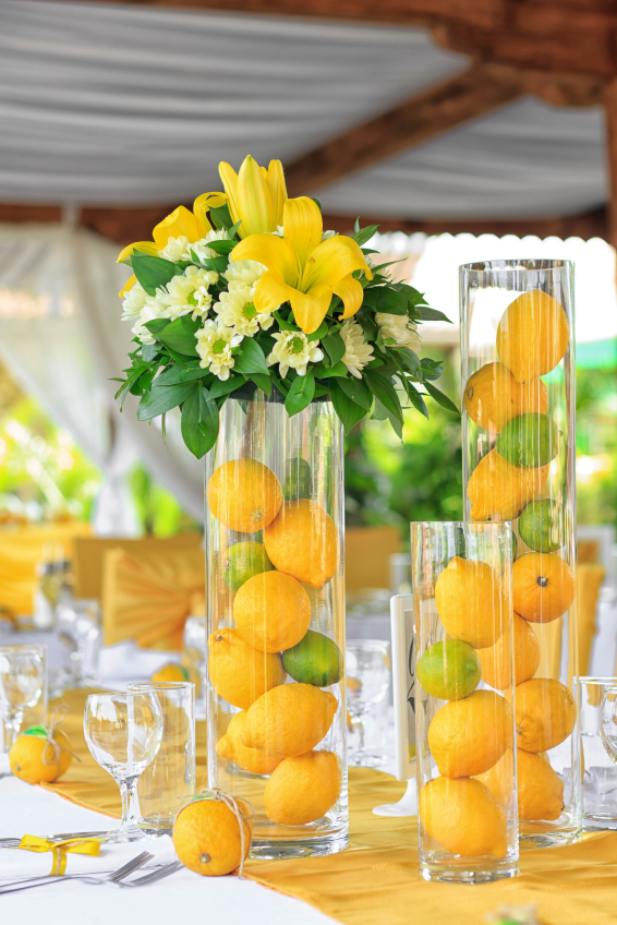 Deko-Tipp für Sommerfeste: Besonders schön werden sommerliche tafeln, wenn Sie sie mit leuchtendem Obst dekorieren. Zum Beispiel mit gelben und grünen Zitrusfrüchten oder auch orangenen Physalis und rote Litschis. Ein wahrer Hingucker ist die rot-leuchtende Drachenfrucht mit dem schneeweißen Fruchtfleisch. Geschmacklich hat sie allerdings nicht viel zu bieten.